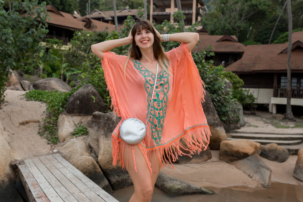 Try a stylish cover-up, a long shirt, or a maxi skirt. The Chaaya – Feather-Light Cover-Up from Timala is perfect to throw on before heading to brunch — it looks casual and elegant at the same time.