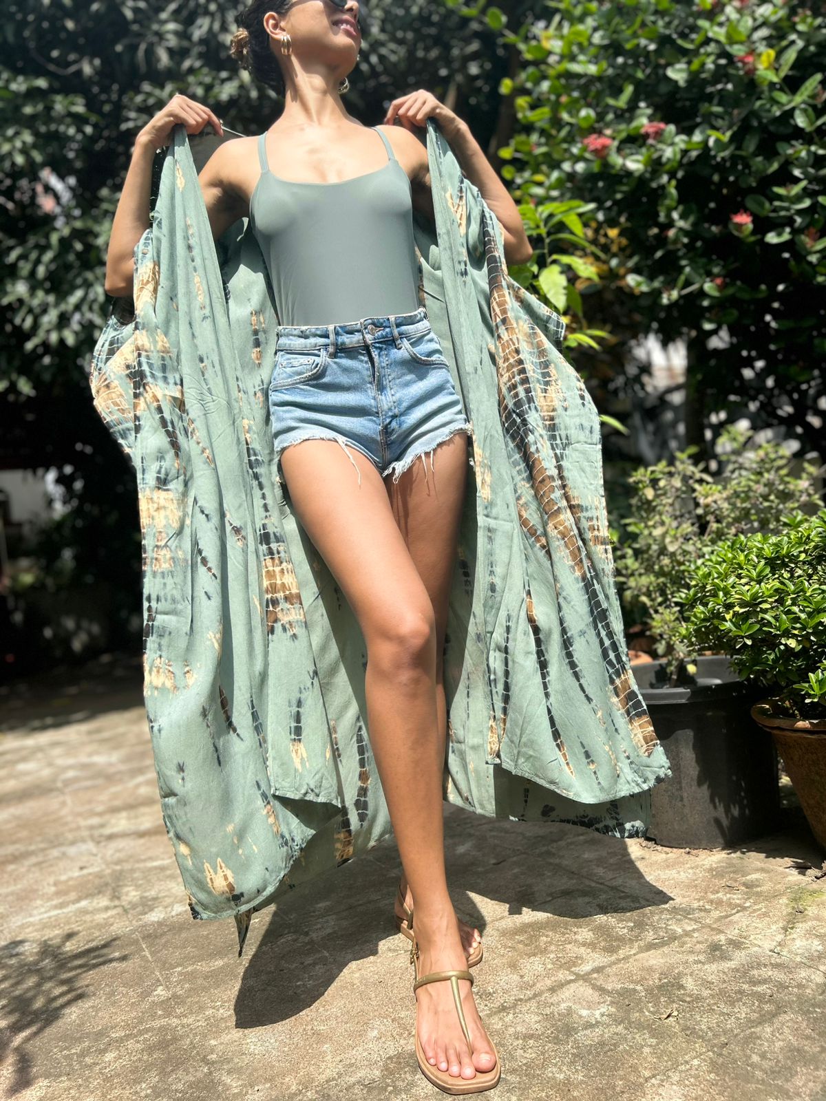 Chaaya Cover-Up is designed for women who love versatility and ease. Made from breathable viscose cotton, it’s ultra-light, soft on the skin, and perfect for layering over your swimsuit or styling with shorts and sandals. The Shibori-inspired dye patterns in dreamy Black and Olive shades give Chaaya a chic, bohemian vibe that transitions seamlessly from beach days to casual outings. Its relaxed, flowy silhouette flatters every body type while keeping you cool and comfortable. Wear it open, belt it up as a dress, or pair it with resort wear for a holiday-ready look. Chaaya is the ultimate wardrobe essential for travelers and beach lovers alike.