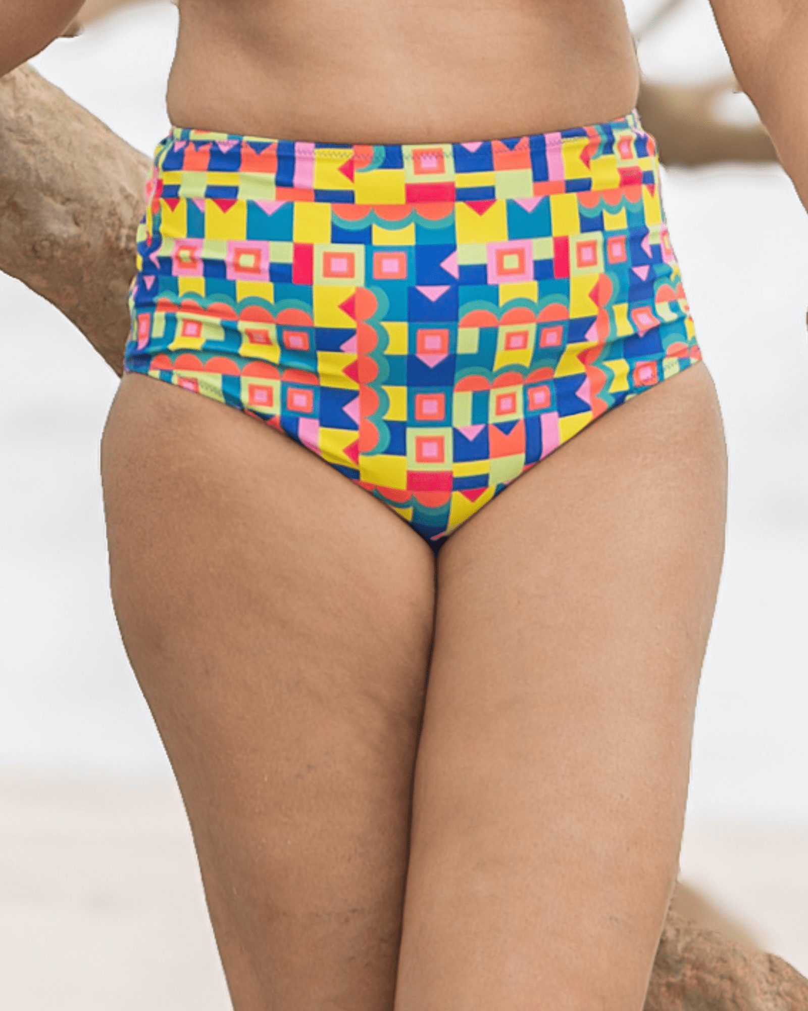 Step into bold beach style with Tribal Rani – the high-waisted bikini bottom that flatters, fits, and celebrates vibrant, confident women everywhere.